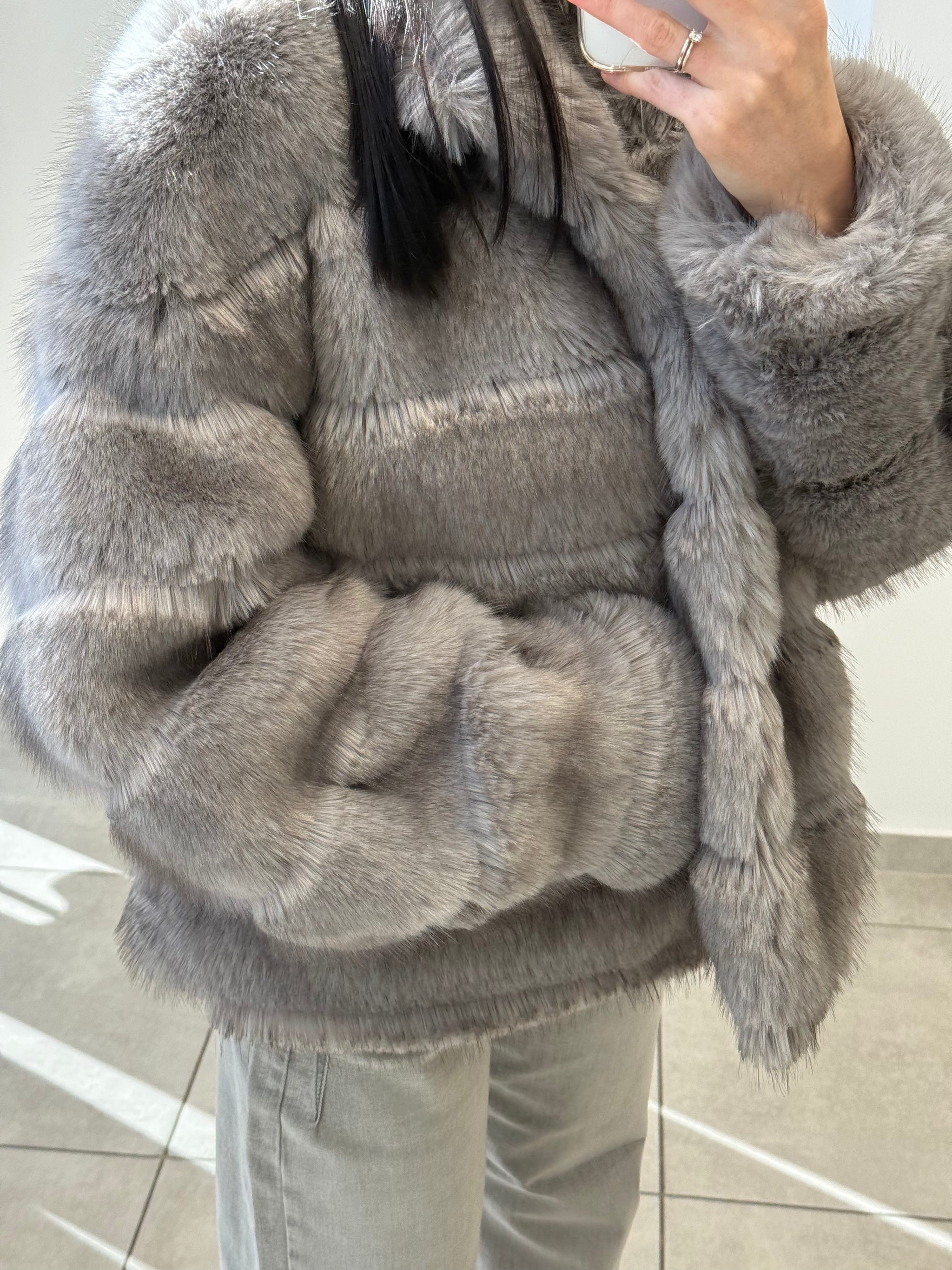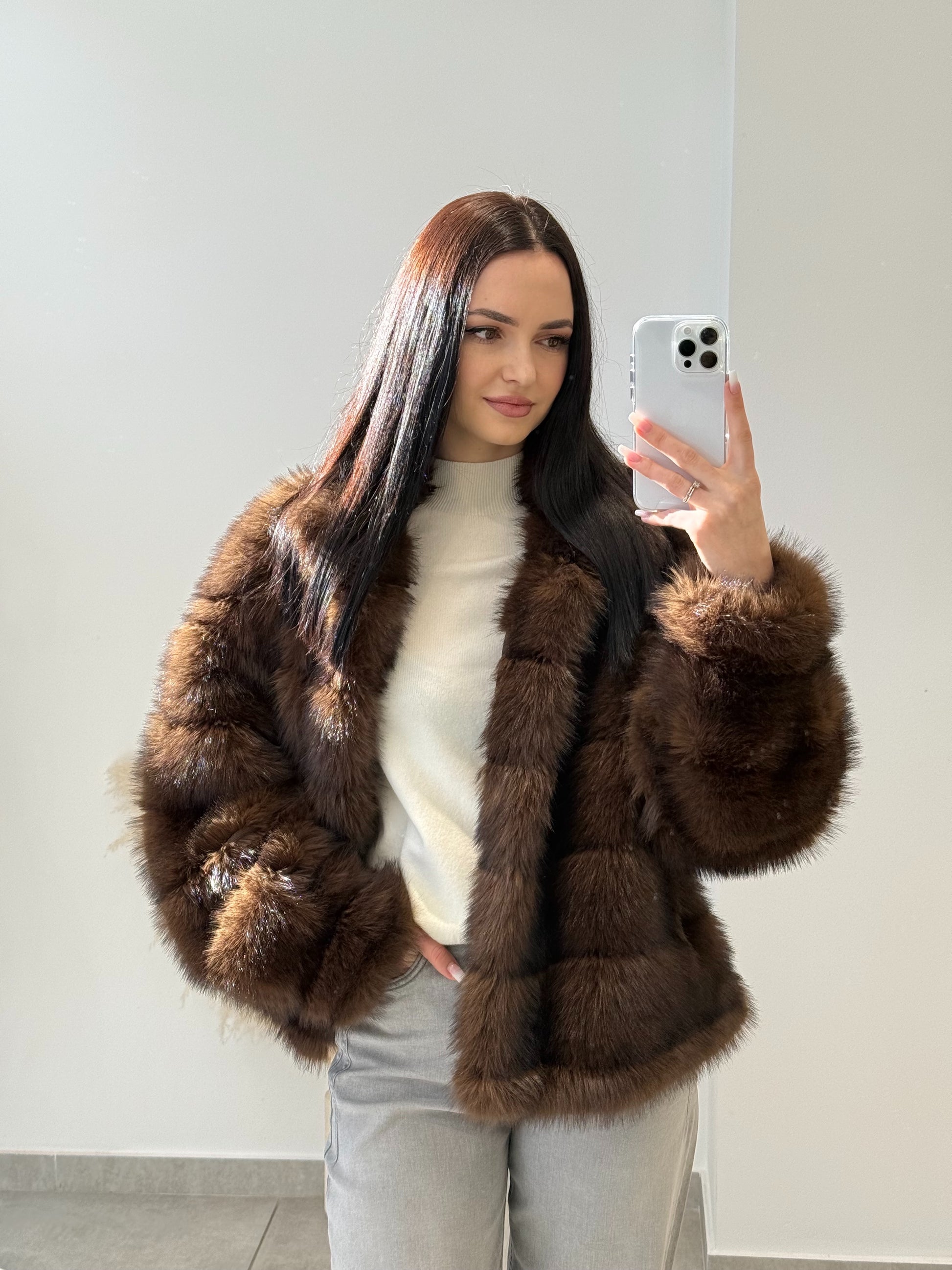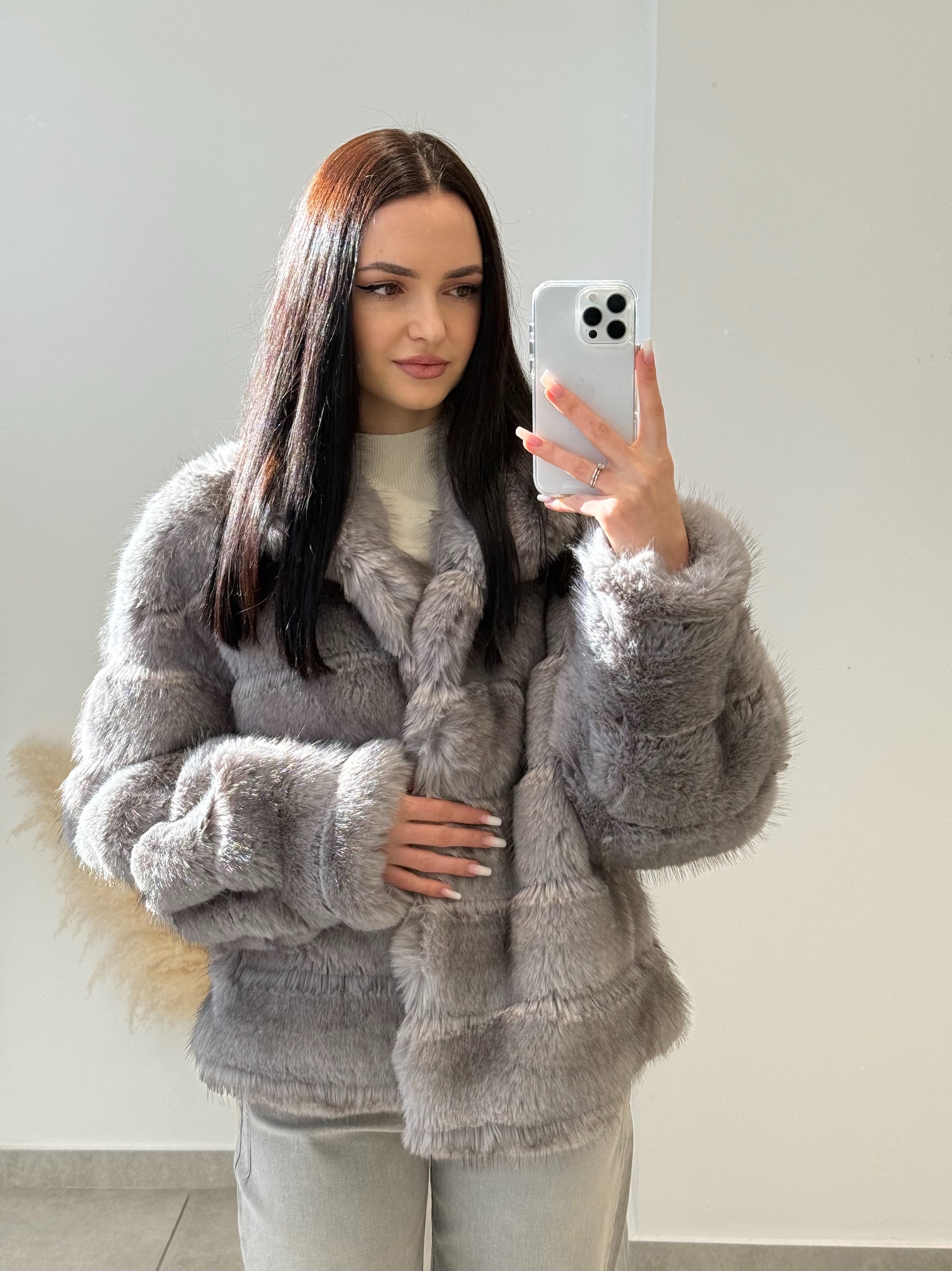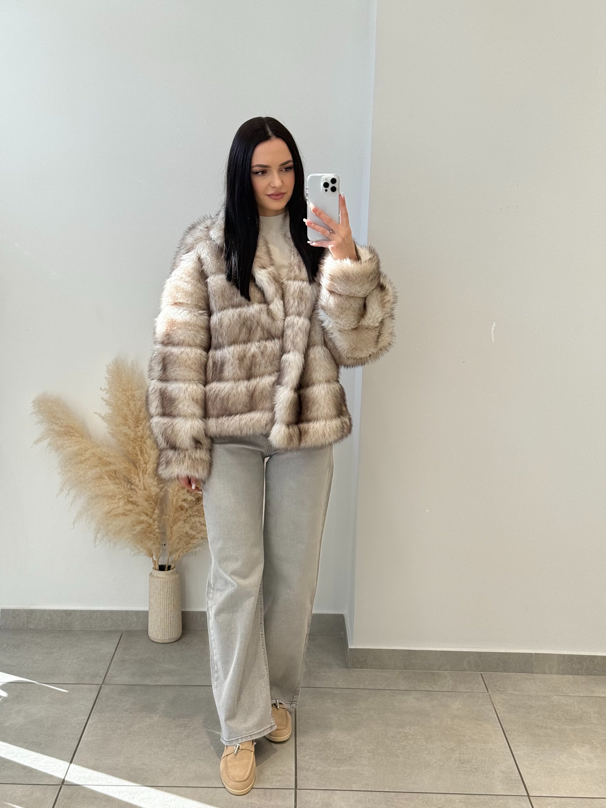 Blană ecologică cu textură moale și aspect pufos. Designul stratificat creează un efect vizual elegant și conferă un plus de căldură. O piesă ideală pentru sezonul rece, care îmbină perfect stilul cu funcționalitatea.