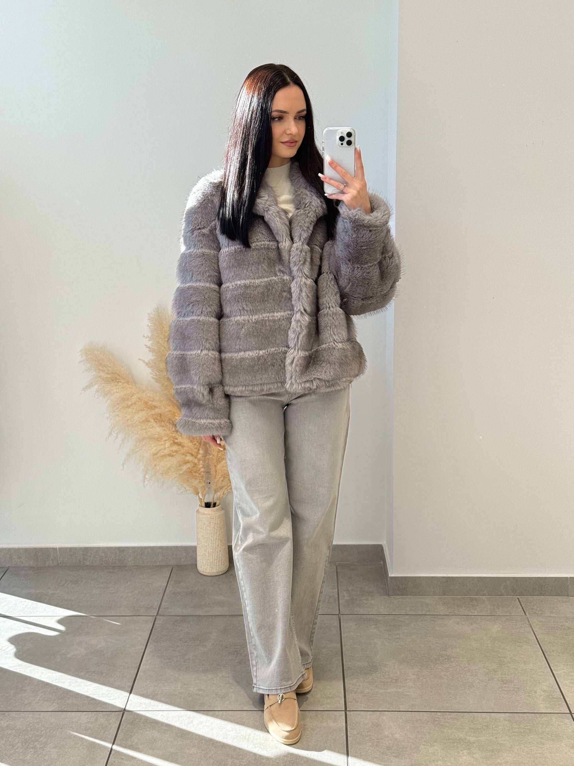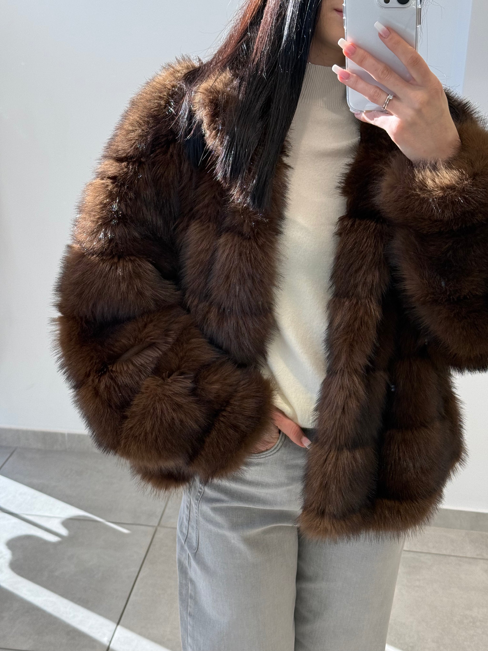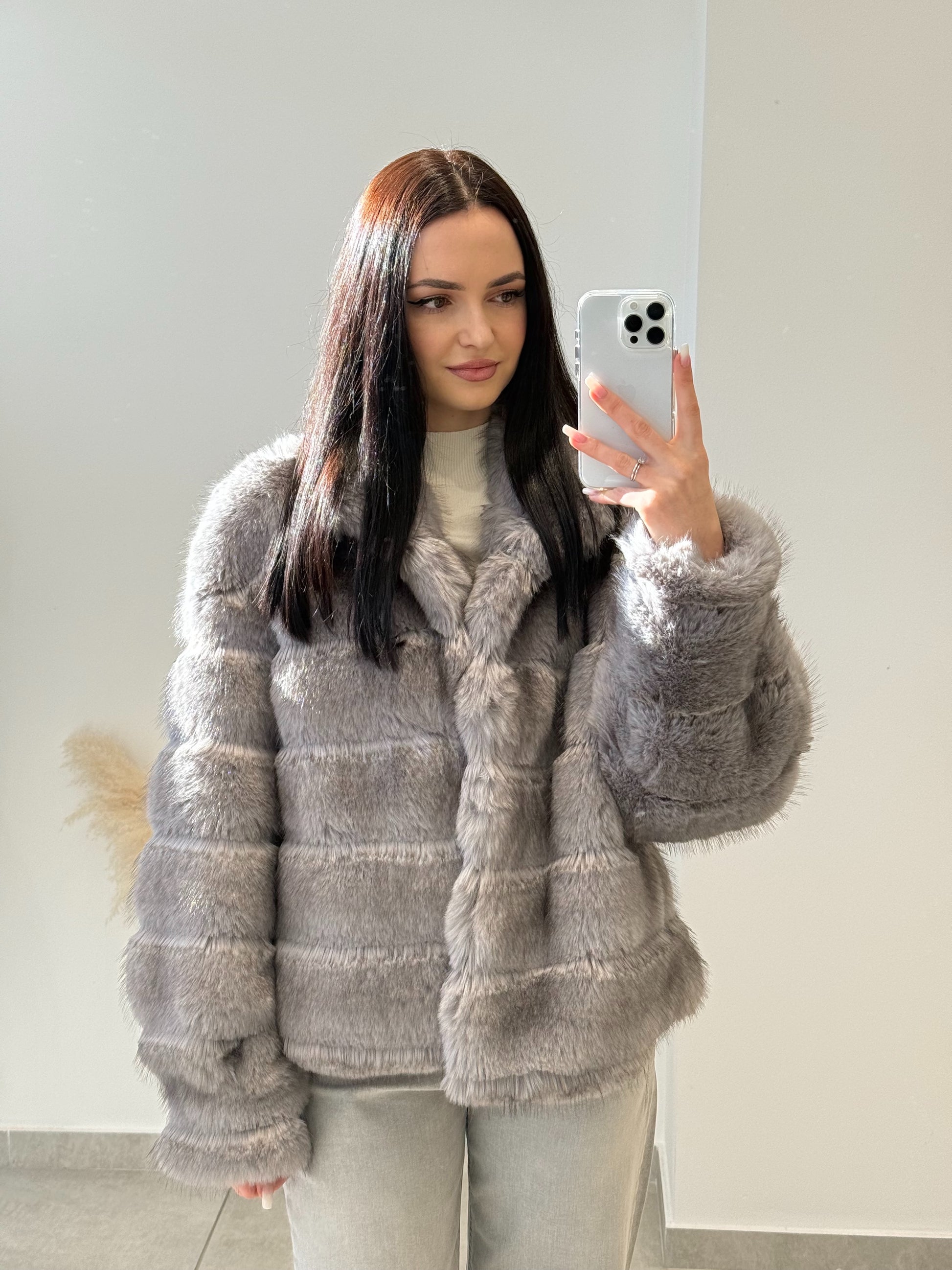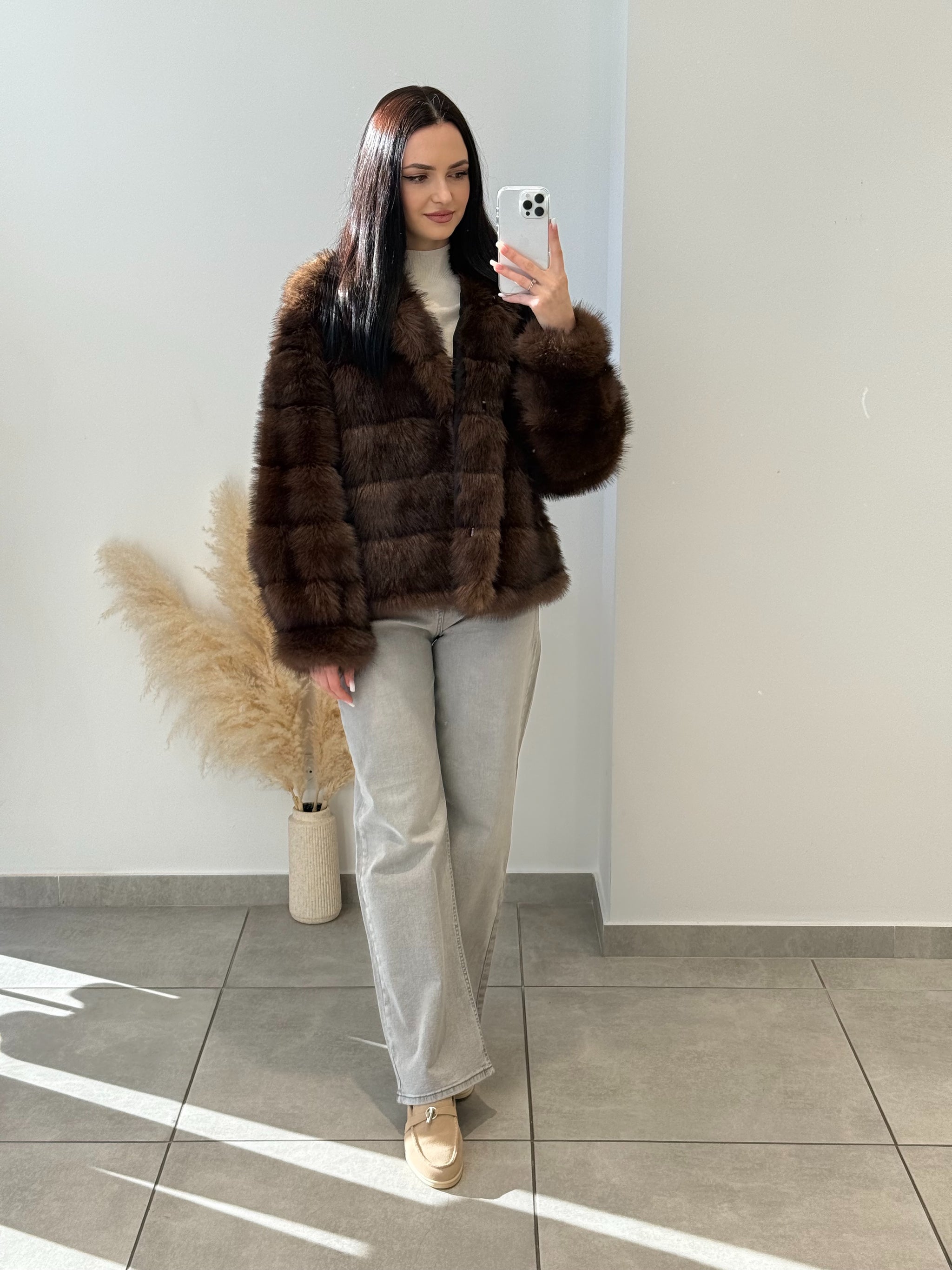 Blană ecologică cu textură moale și aspect pufos. Designul stratificat creează un efect vizual elegant și conferă un plus de căldură. O piesă ideală pentru sezonul rece, care îmbină perfect stilul cu funcționalitatea.