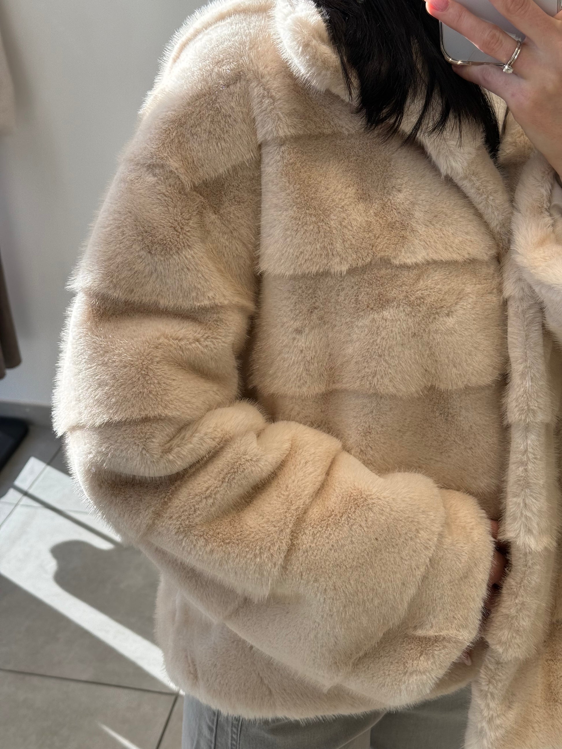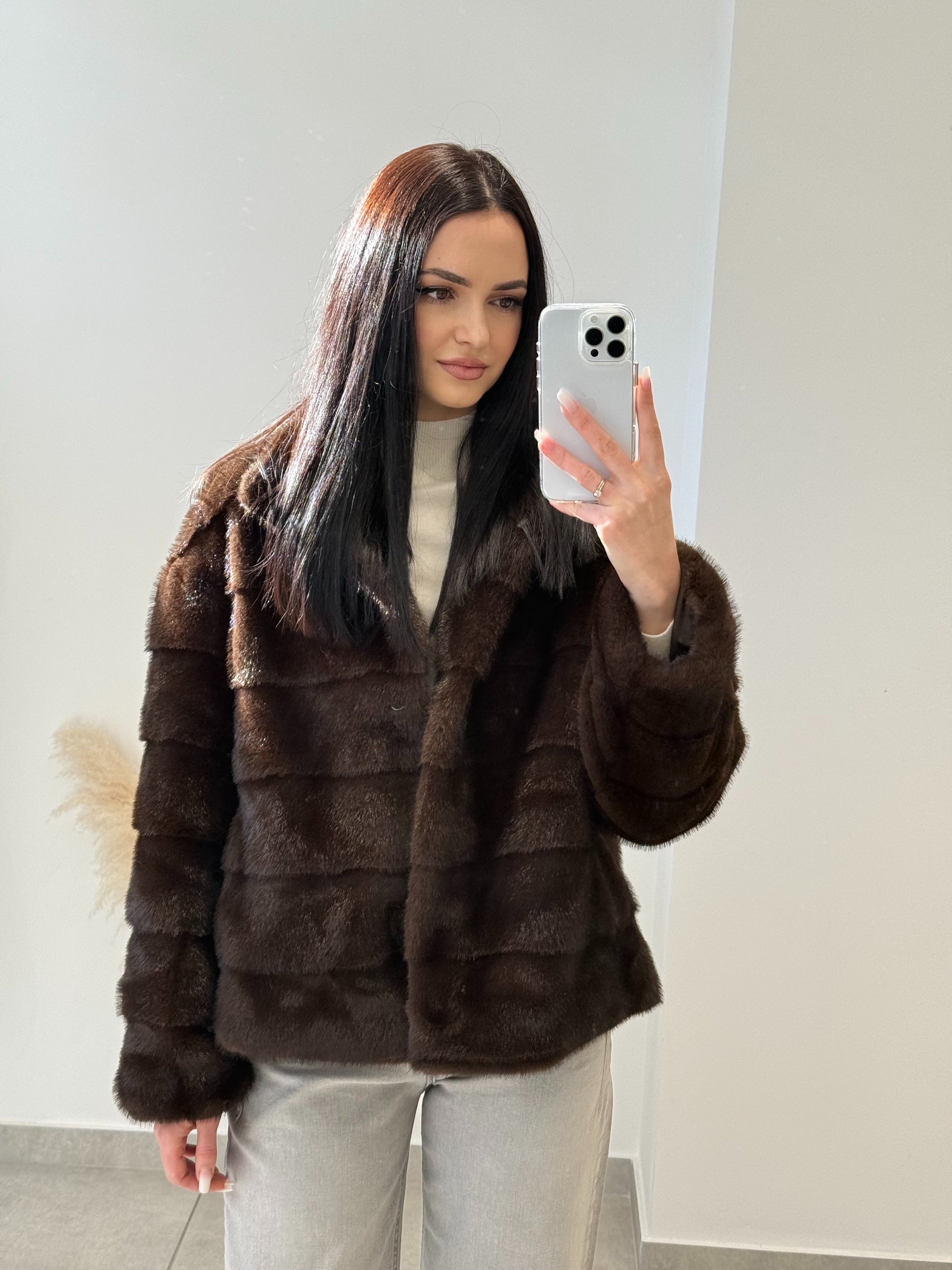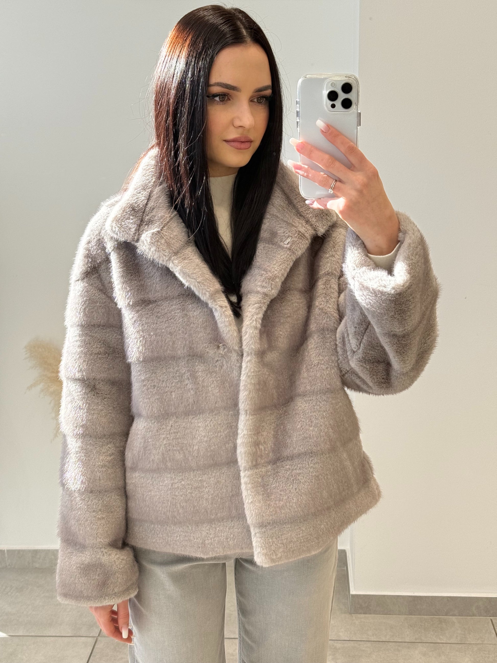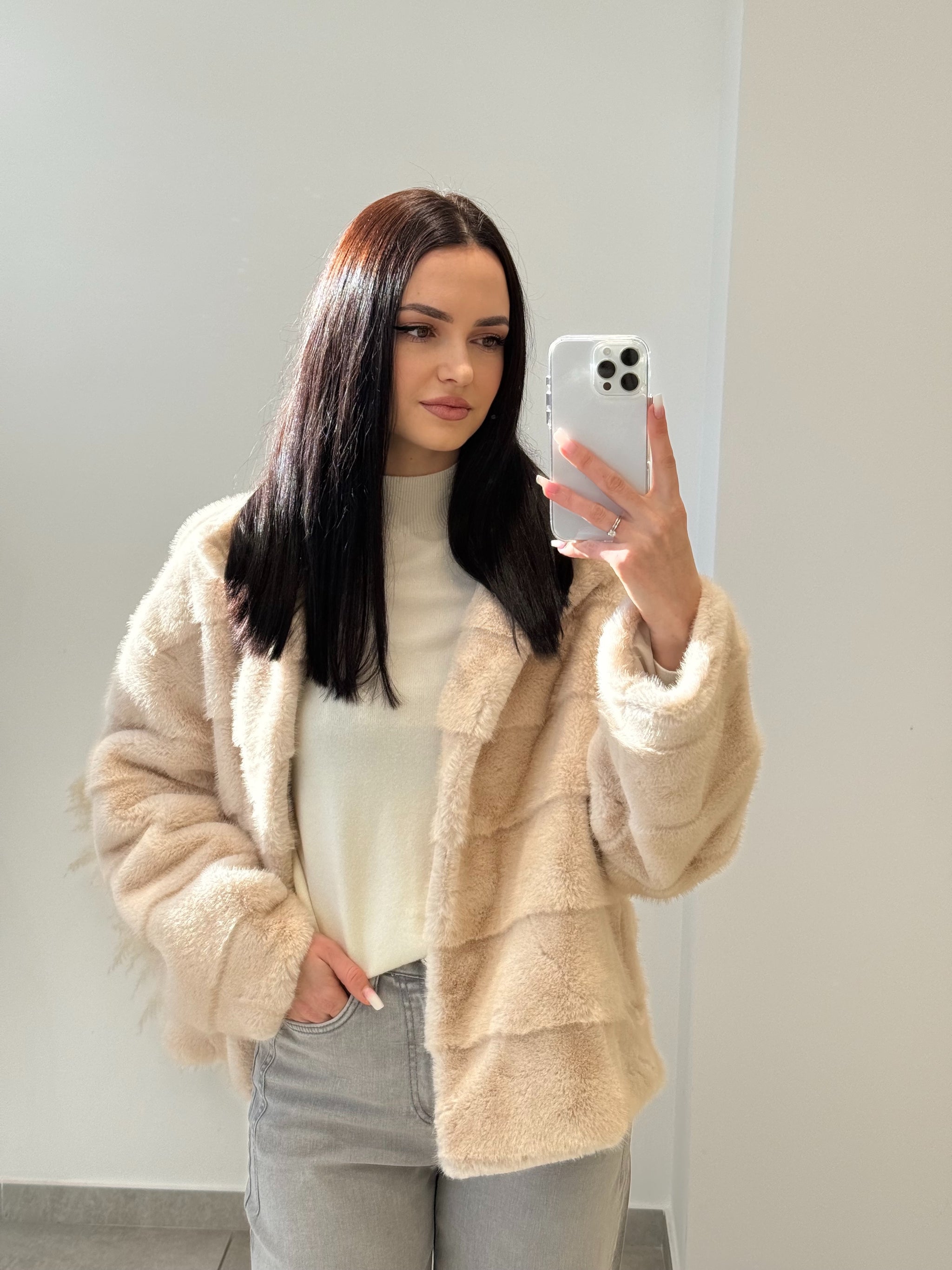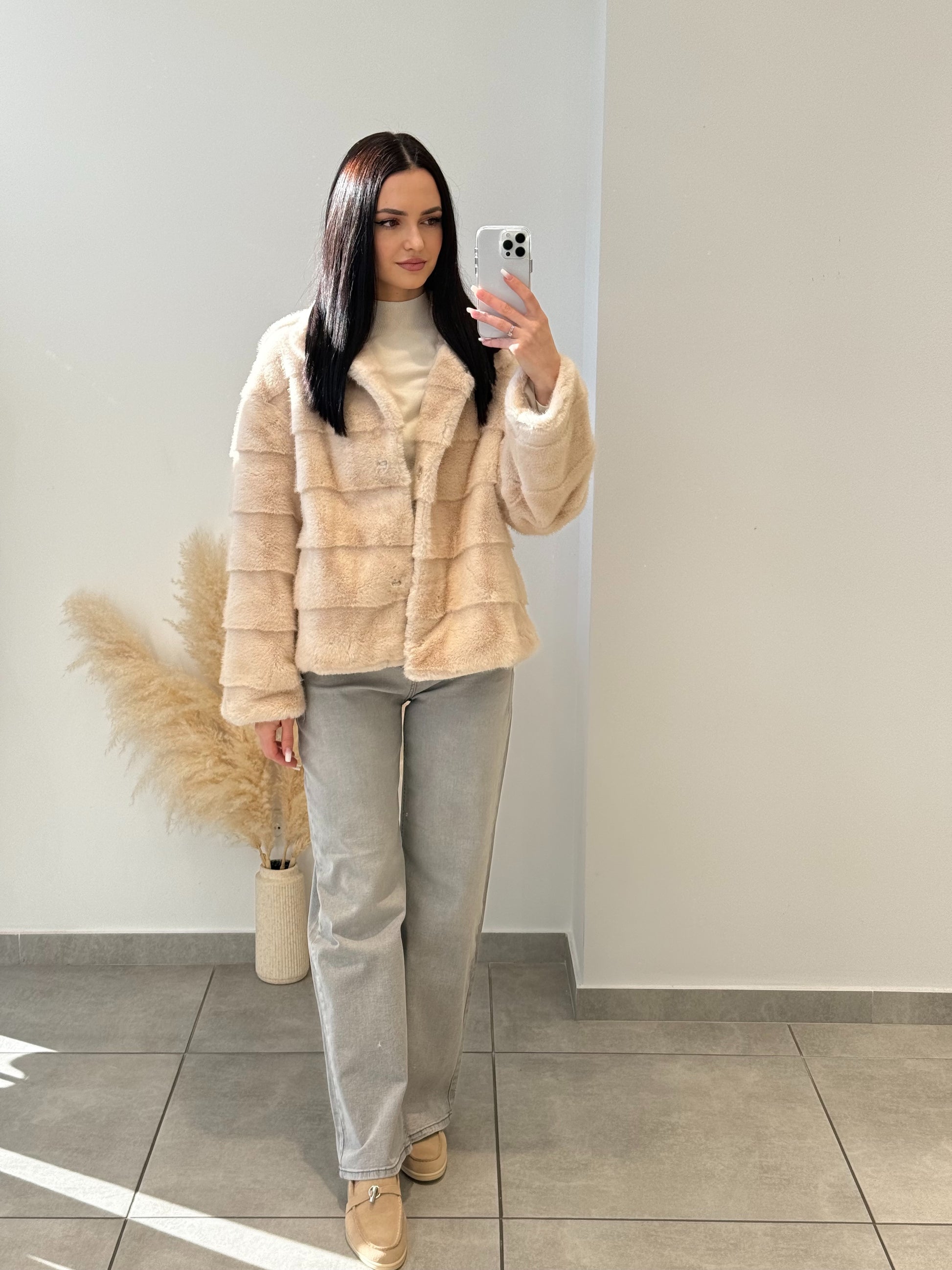 Blană ecologică cu textură moale și aspect elegant. Croială clasică și bine structurată oferă o siluete echilibrată, feminină, ușor de integrat în ținutele de zi cu zi.