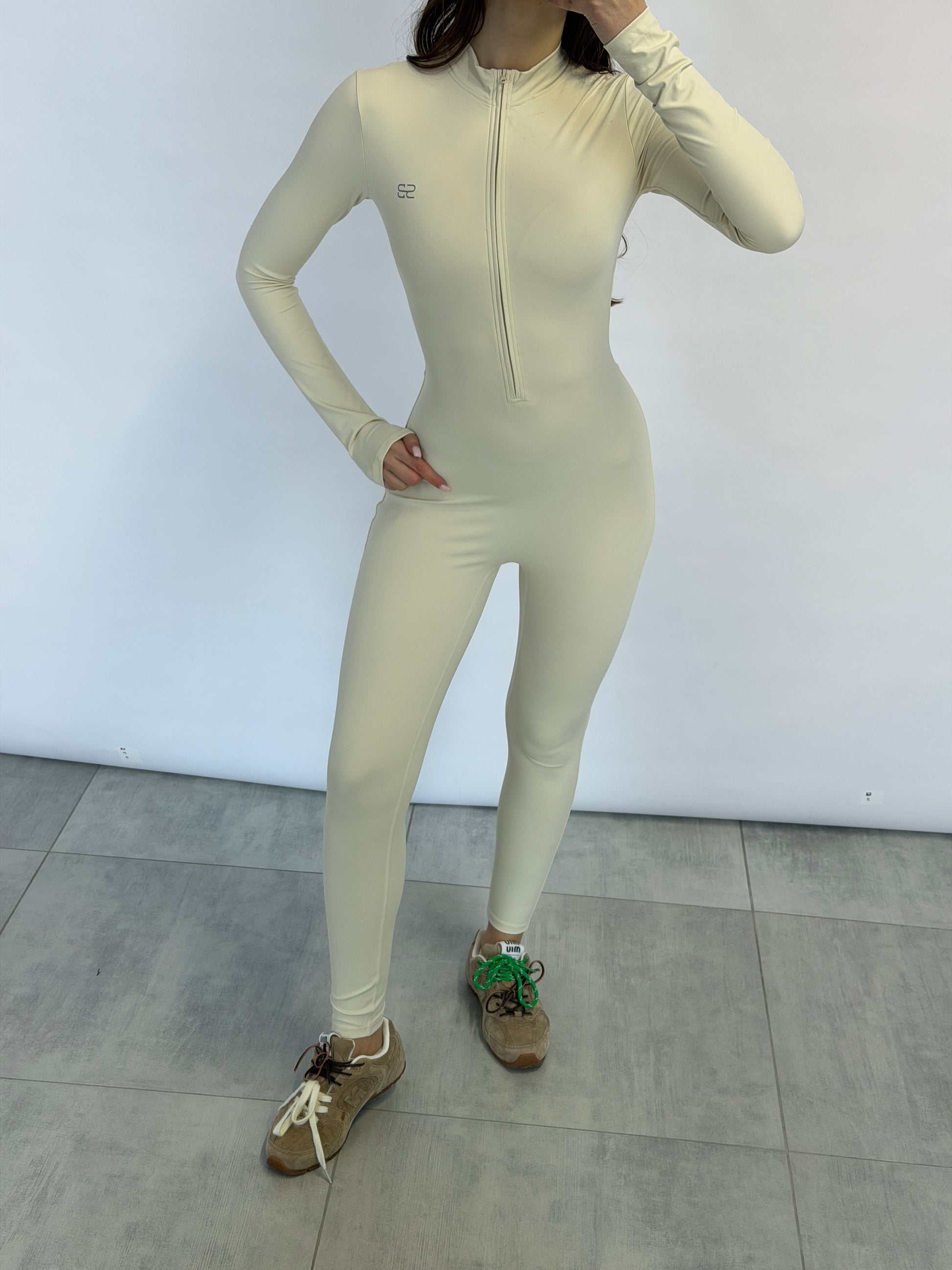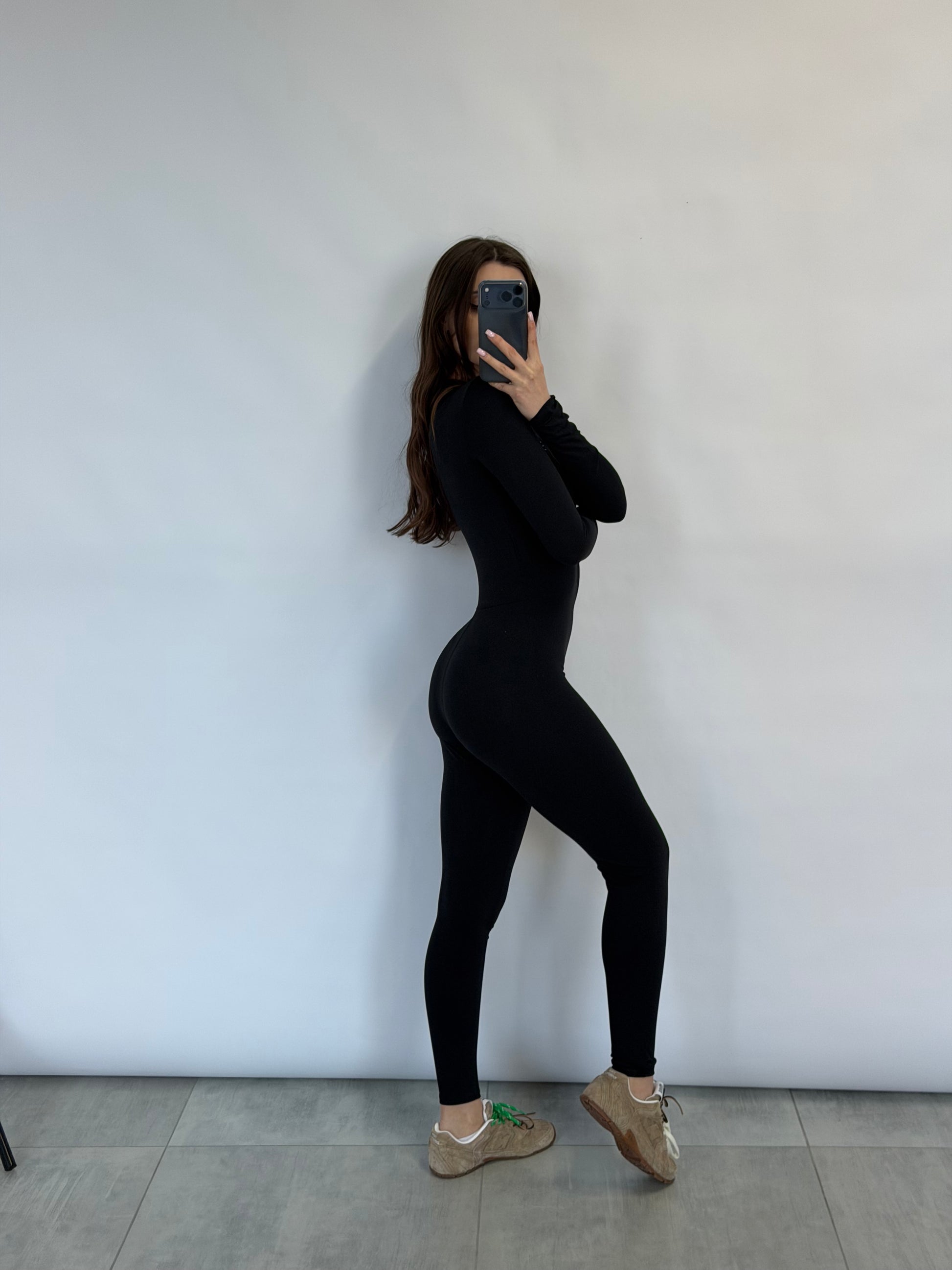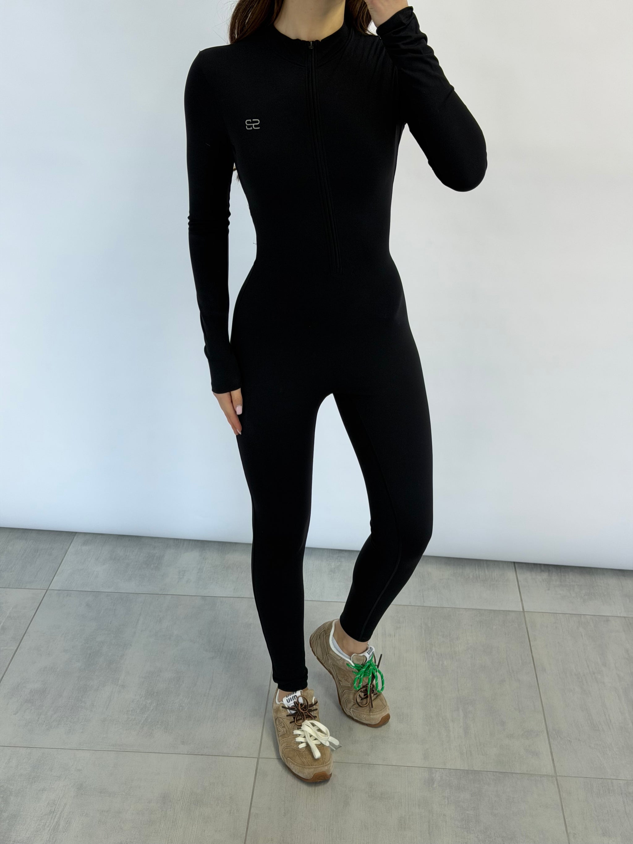 Salopetă mulată, cu mânecă lungă și fermoar frontal, ce evidențiază silueta. Realizată din material elastic și confortabil, se mulează perfect pe corp și asigură libertate de mișcare.